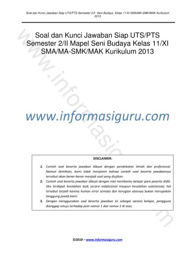 Soal dan kunci jawaban pas seni budaya smp kelas 9 kurikulum 2013 ….